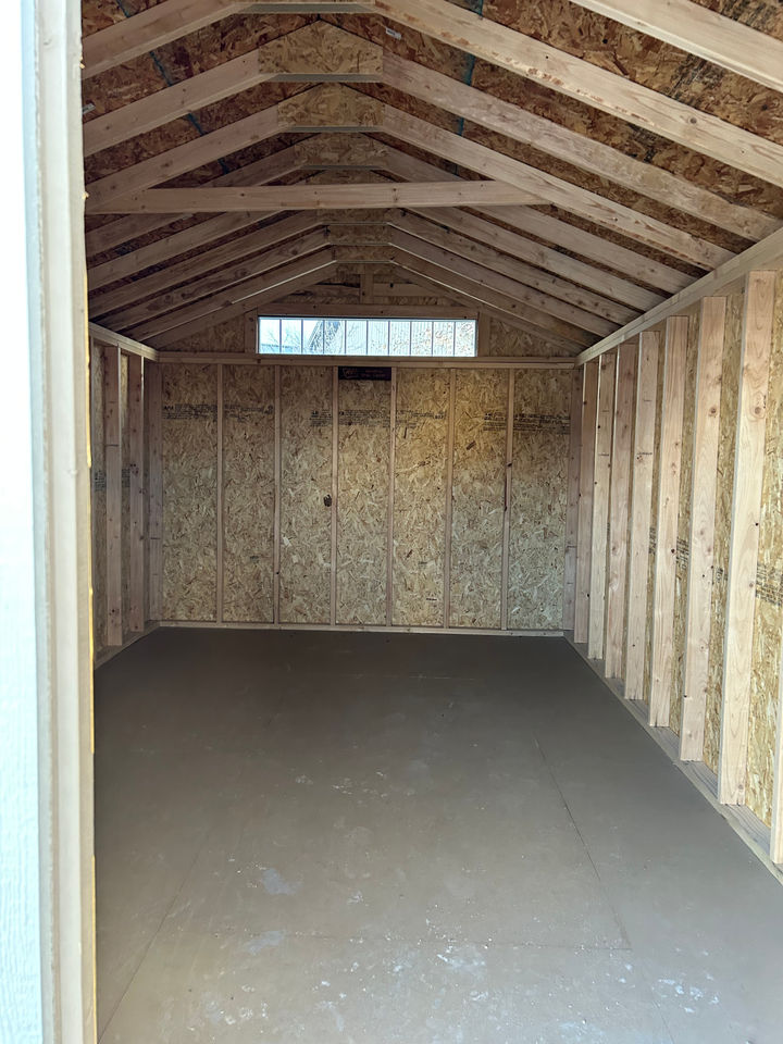 10x16 Buckskin A Frame Shed. Includes 5x6 double wood doors and a transom window.
